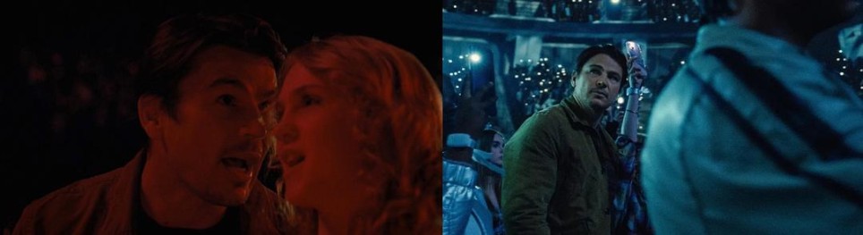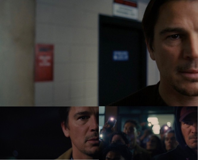 伴随着色彩符号的强势,是同样被“3”这个数字严密结构起来的叙事骨骼。三幕剧(演唱会、Lady Raven的领域、夫妻夜谈)、三角核心人物(Cooper, Lady Raven, Riley)、Cooper面部三次被画框切割(代际创伤、暴力觉醒、婚姻幻灭)、三离Riley、三次母亲幻象、三位悬置的“第十三个受害者”……数字“3”如同那个三色信号灯,是影片符号系统内部精密的榫卯结构,驱动着情节的齿轮严丝合缝地运转。