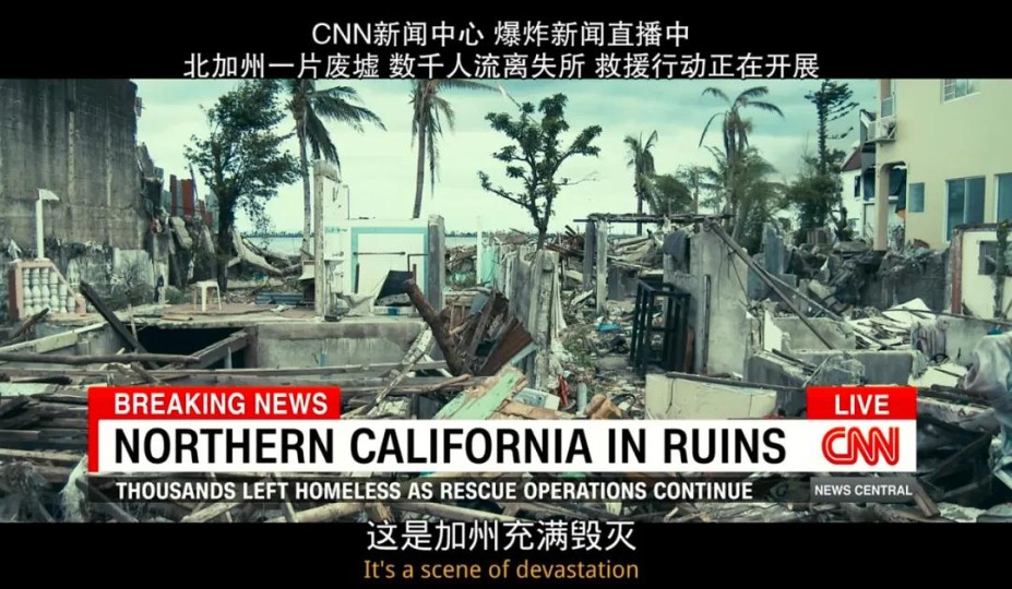 影片开头,以小学语文老师安德森的视角切入,展现了一幅世界末日的图景——全球电网崩溃、地震海啸肆虐、饥荒肆虐、数百万人死亡……