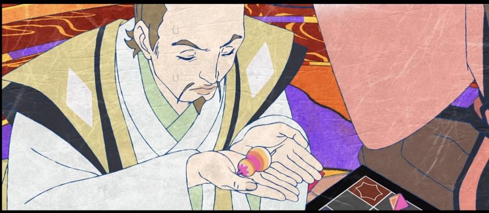这个布景,明明就是棋局(政治环境)中的棋局。 转到大奥的七之口,一个商人在兜售有鼠纹样的护身符,