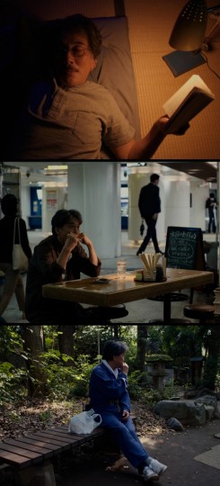 男主日复一日干厕所清洁工的工作(电影中有很多男主认真工作的片段,让我不禁感叹日本的厕所设计的好有创意)每天早晨听着晨起扫地的声音起床,一贯的洗漱浇花,出门前在自动贩卖机前买一瓶咖啡,在工作的路途中放着自己喜欢的磁带,每一次的工作都极度认真(不会觉得是干清洁工让人不屑一顾,反而能从工作中找到活着的乐趣),午饭时会买袋三明治,坐在长椅上望着空中树枝飘动的声影,下班后会去澡堂洗澡,在自己常去的餐厅吃一顿晚饭,睡前还会看看书,到了休息日也是一贯的去洗衣房洗衣,再骑着自己的自行车去到胶卷店洗照片...