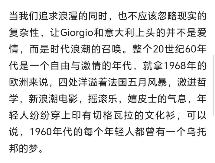 看这个电影之前不知道这是根据真实的历史事件改编的。如果是纯讲故事,这个电影就很一般,但是了解完真实的事件,觉得比电影让人震撼多了。 那个年代,尤其是68年,是一个自由精神至上的年代。共产主义,自由平等,追求精神世界的思想为年轻人所热烈追捧。物质主义,享乐主义,消费主义还没有像现在这样全球化洗脑。所以当代忙于赚钱的牛马们,对前辈那些为了理想可以在路上,流浪,反抗,示威,放弃物质条件的做派不一定能理解接受。 然而时间只过去了几十年而已,世界已经变了那么多。