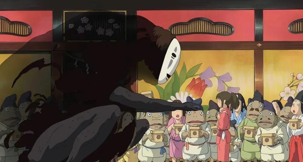 无面者,这个在油屋阴影中徘徊的幽灵,是宫崎骏对现代性精神困境最精准的捕捉。他戴着能变出黄金的面具(物质欲望的象征),内心却是一片巨大的空洞与孤独。他渴望被看见、被接纳,却只能用无止境的金子来填补内心的虚无。