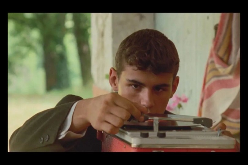 无论《野芦苇》还是《橡树与芦苇》,一切的开始是一场婚礼庆典,当交换婚戒的仪式完成,摄影机立刻由穿越了纵深和高度差退到赛尔日身后,邀请他敲响教堂大钟、播放唱片机,故事背景的人们于是才能从一阵肃穆解放自由欢唱。赛尔日是一个能在虚构的神秘里轻易掌控着音乐与身体的节奏的人,可当哥哥皮埃尔被“战死”后,他跳进溪流,好像沾染了尸体未干的血,再上岸时身上已穿着哥哥替身的外衣。而那条河并不停在原处,它流进弗朗索瓦的额头,在受伤后弗朗索瓦与梅蒂做的第一件事是去看雅克·德米的《萝拉》,神奇的是从电影院回来伤口便愈合。男孩在镜子前不断校准自身,他现在与同龄人的形象没有不同,却如获新生般第一次认识到自己是怎么存在于世上。