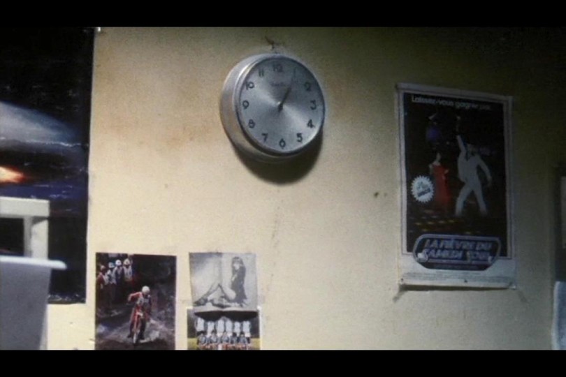 重看这一段时我仍感到一阵头晕目眩,耳边的鸟鸣慢慢变成了床边的大提琴声,我看见阿克曼像孩子一样埋怨母亲,关掉12∶12的闹钟,宣称要做一部关于怠惰的电影。从布鲁塞尔到巴黎再到纽约,睡觉和启程之间有许多个间隔十分钟的闹钟。沙发上的心理医生在这十分钟里总能把叙事推向新的到达(闹钟铃声现在不是靠听的,而应该用来看!)那些在阿克曼赖床的时候走路的人是一串串音符,当位置的踪迹从裂缝中渗出来,新的故事抵达了。这些动作不再是孤立的碎片,而是一连串身体与物件的相互触碰、杂耍,温柔记录的现场。